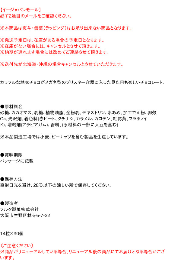 ●製造者 フルタ製菓株式会社 大阪市生野区林寺6-7-22 14粒×30個【広告文責】株式会社イージャパンアンドカンパニーズ 072-875-6666《ご注意ください》 ※商品がリニューアルしている場合、リニューアル後の商品にてお届けとなる場合がございます。
