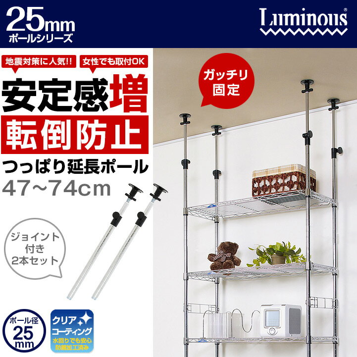 25mm用つっぱりタイプ延長ポールラインナップ(ラックから天井までの高さでサイズをお選びください。